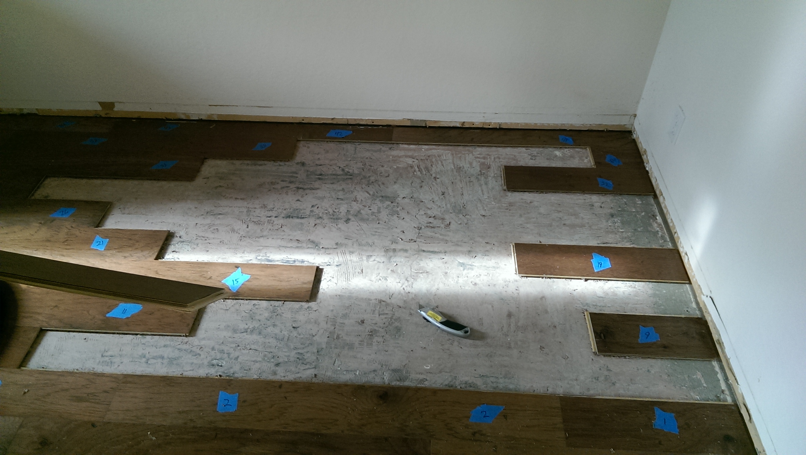 First things first, is it engineered or laminate? Makes a big difference. How thick are the boards? Does it have a tongue and groove that lock together? Take a close up pic of the tongue edge of a new board.