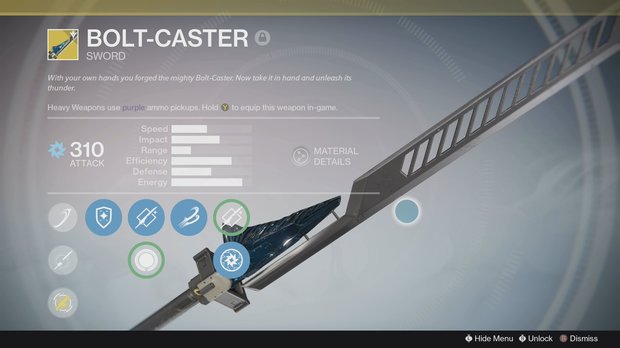 The Crucible Master will send you on a quest to collect materials from resource nodes, based on the sword element you chose; You'll also need to score some Arc, Solar, or Void ability kills. The Solar sword requires Helium Filaments from the Moon, the Void sword takes Relic Iron, and the Arc sword needs Spinmetal from the Cosmodrome. You'll need to farm 10 special materials (called Zeptocyte Cores for Arc, Solitron Flares for Solar, or Relic Crystals for Void) from the resource nodes (not the chests) on your respective planet. To farm the ability kills, replay the first section of the Siege of the Warmind mission. The hall before the large Omnigul room throws dozens of thrall at you. Kill them, die on purpose, rinse and repeat.